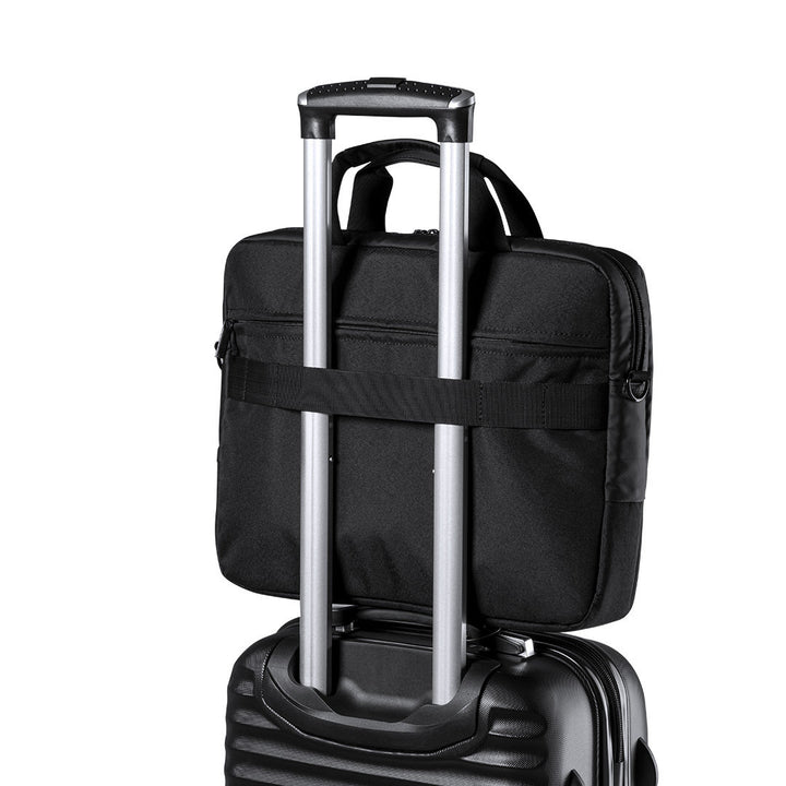 Hochwertige Antonio Miro Aktentasche aus strapazierfähigem 600D Polyester. Mit schlichtem Design und gepolstertem Laptopfach für Laptops bis zu 15 Zoll. Mit komfortablem, verstärktem Tragegriff, Reißverschlüssen mit Metallziehern und Fronttasche. Markenlogo auf der Vorderseite.
