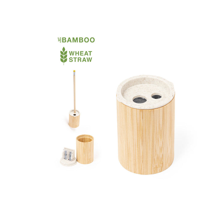 Origineller Anspitzer aus Weizenstroh und Bambus. Einfach und handlich zu bedienen, mit zwei Anspitzern in verschiedenen Durchmessern. Darüber hinaus verfügt er über einen Bambusbehälter, um die Späne aufzufangen.Weizenstroh fördert die Verwendung natürlicher Rohstoffe und reduziert so die Schadstoffemissionen.Materialien wie Bambus fördern die Verwendung natürlicher Rohstoffe und reduzieren so die Schadstoffemissionen. Es stammt von einer sehr widerstandsfähigen und vielseitigen Pflanze, mit schnellem Wachstum und Regeneration, was es zu einer ausgezeichneten Alternative zur Verwendung von traditionellem Holz macht.
