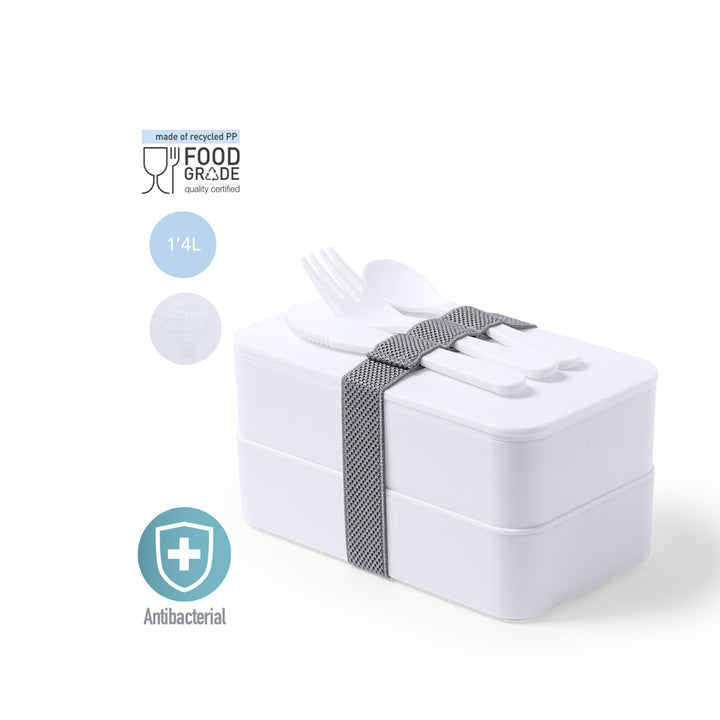 Ein weiterer Vorteil der Lunch Box Fandex ist der praktische Sicherheitsverschluss, der ein Auslaufen des Inhalts verhindert. Zusätzlich enthält die Box ein Gabel-, Löffel- und Messer-Set, sodass Sie alles für die Mahlzeit direkt dabei haben.
