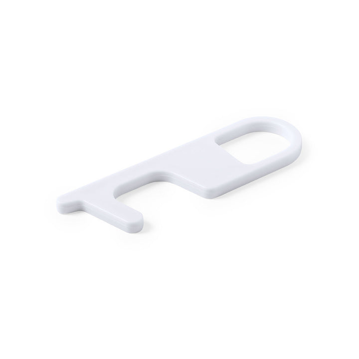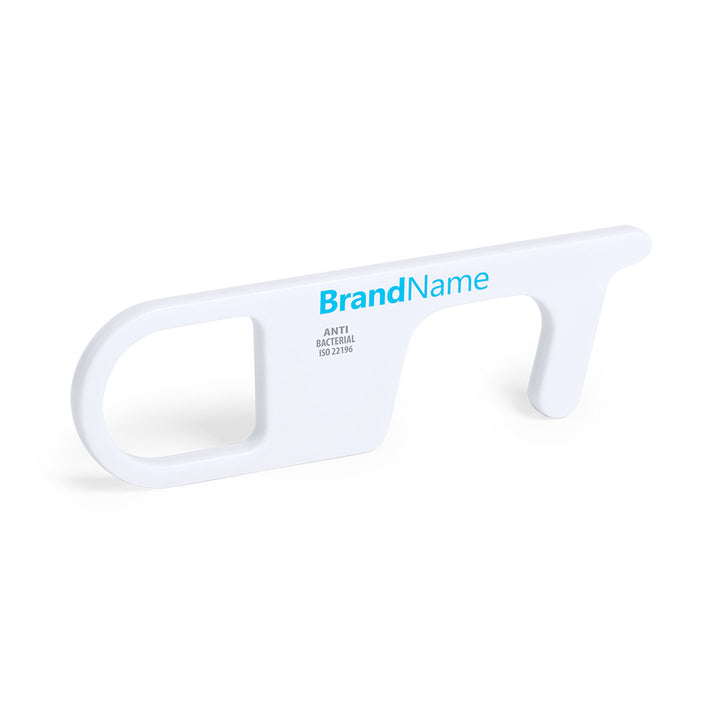 Hygienischer, antibakterieller und berührungssicherer Sicherheitsschlüsselanhänger, hergestellt aus widerstandsfähigem ABS mit einer soliden Verarbeitung. Speziell entwickelt, um das Berühren von Oberflächen im öffentlichen Bereich mit den Händen zu vermeiden (Türgriffe, Schalter, Wasserhähne im öffentlichen Bereich, Geldautomaten...). Mit komfortablem Ausschnitt für den Finger und in einer individuellen Tasche präsentiert. Empfohlen für Tampondruck.Produkte mit antibakterieller Behandlung sind in der Lage, die bakterielle Belastung der Materialoberflächen dank der Zugabe von permanenten statischen mikrobiellen Mitteln drastisch zu reduzieren, mit hoher Wirksamkeit bei der Hemmung und Verhinderung bakterieller Verunreinigungen.Artikel nach der Norm ISO 22196, die die antibakterielle Aktivität in Kunststoffen und auf nicht porösen Oberflächen bestimmt. Dies erlaubt es uns, die Wirksamkeit der Bakterienhemmung, die die Zusatzstoffe auf den behandelten Artikeln haben, anhand einer quantitativen Bewertung zu bestimmen.