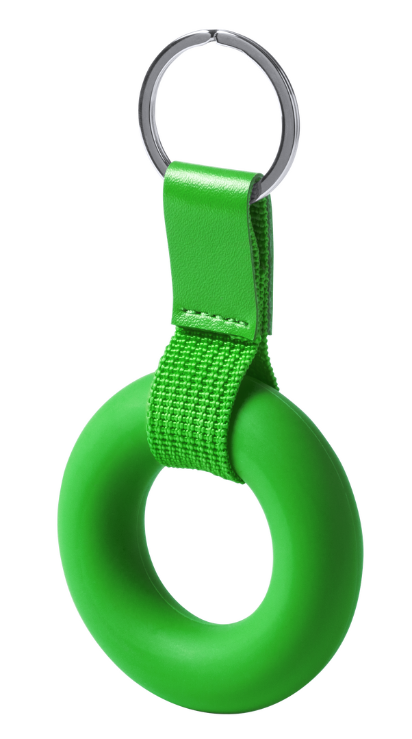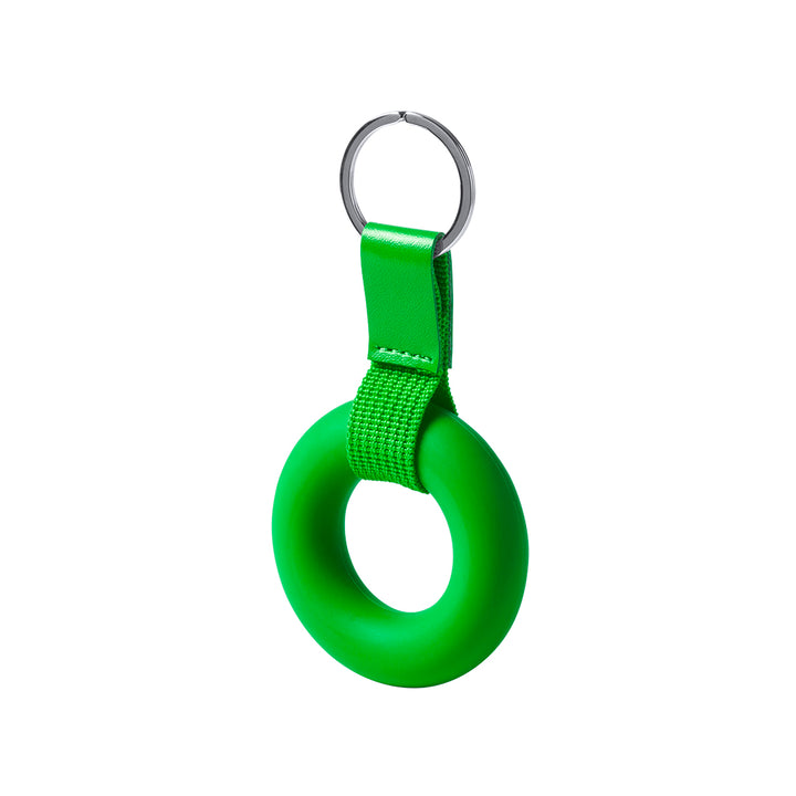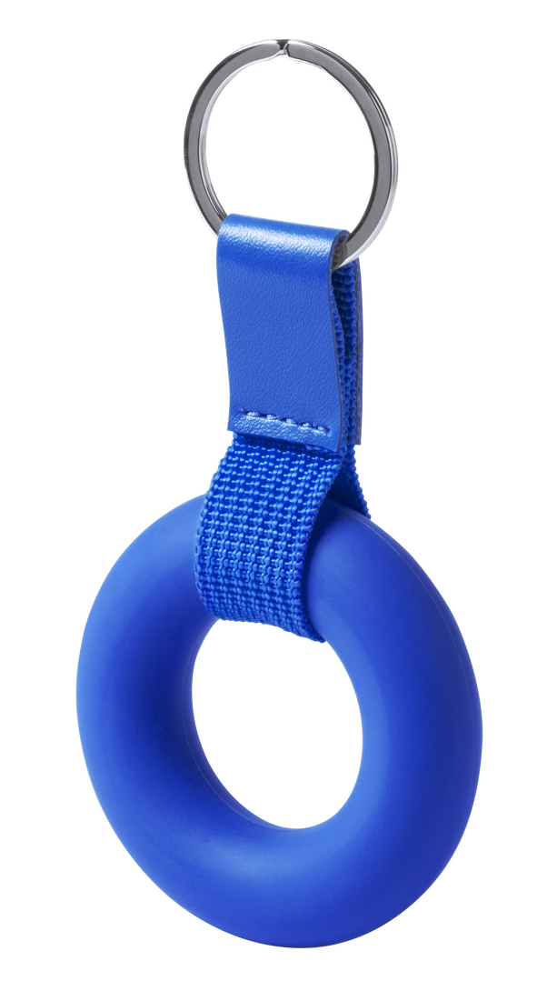 Origineller Anti-Stress-Schlüsselanhänger aus weichem TPR in verschiedenen lebendigen Farben. Mit Polyesterband und farblich passender Kunstlederverstärkung.