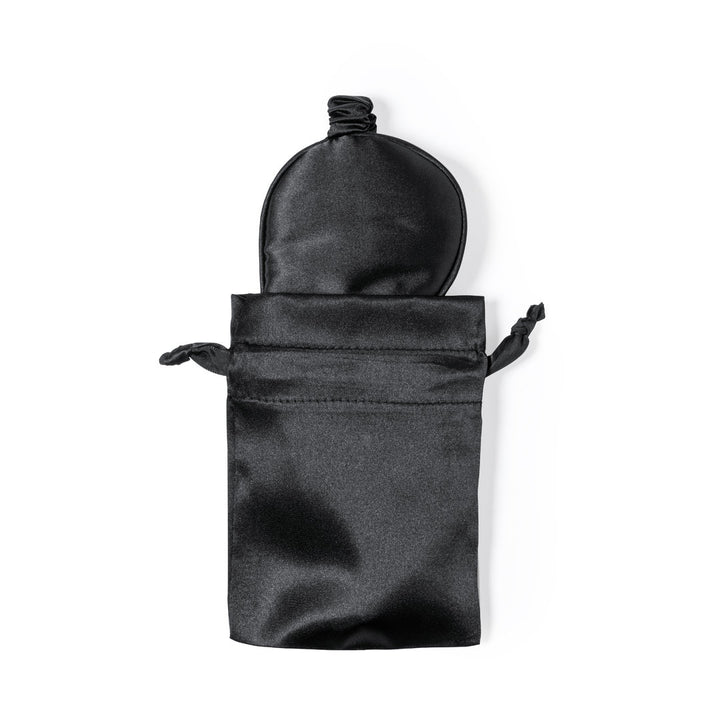 Entspannungsmaske aus weichem Satin, mit passendem Gummiband. Präsentiert in einem individuellen Satinbeutel mit passendem Kordelzugverschluss.
