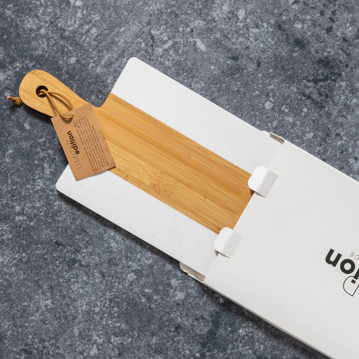 Das Schneide- und Servierbrett Lonsen vereint modernes Design mit traditionellen Materialien. Gefertigt aus einer Kombination von natürlichem Bambus und edlem Marmorextrakt, beeindruckt es durch seine glatte, robuste und langlebige Oberfläche. Mit einer Länge von 18 cm, einer Höhe von 38 cm und einer Dicke von 1 cm bietet das Brett eine großzügige Fläche für vielseitige Anwendungen – sei es als Küchenhelfer oder als elegantes Präsentationsstück.