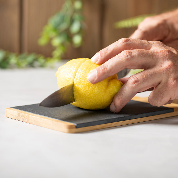 Das Sisim-Brett ist eine praktische und stilvolle Ergänzung für jede Küche. Es kombiniert Bambus und Schiefer, was dem Brett eine besondere Robustheit und Umweltfreundlichkeit verleiht.