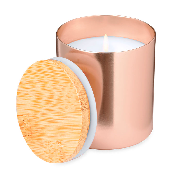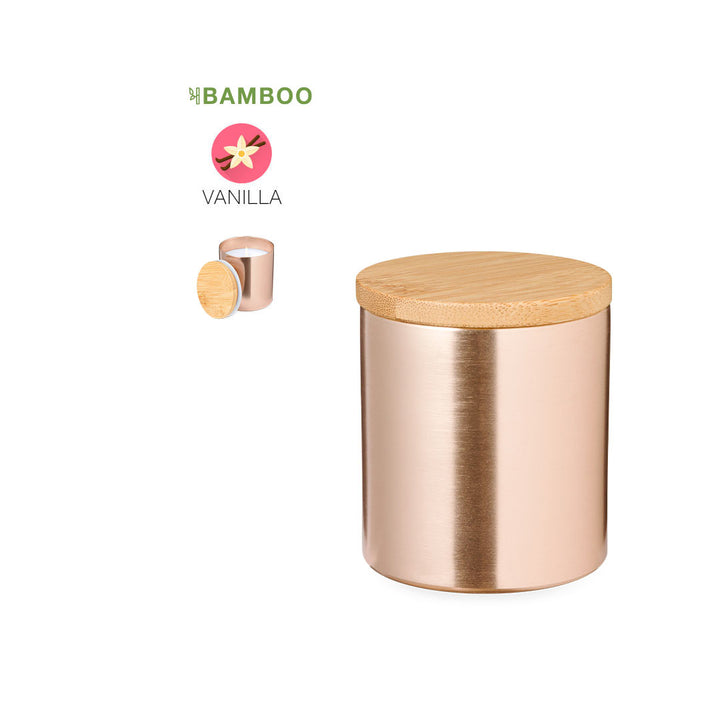 Der beruhigende Vanilleduft trägt zu einem entspannenden Ambiente bei, während das stilvolle Metallgefäß mit Bambusdeckel das Design abrundet. Die Metalloberfläche verleiht der Kerze einen modernen, eleganten Touch und passt sich jeder Einrichtung harmonisch an.