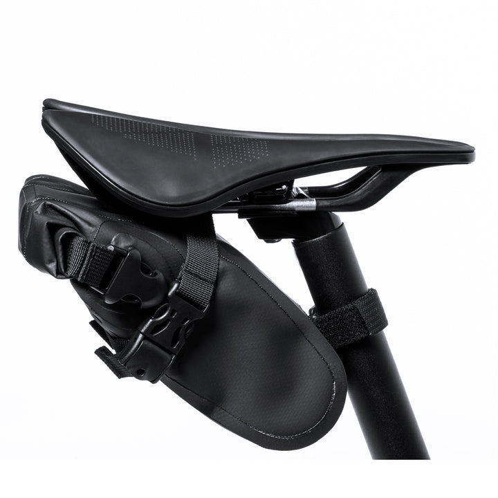 Wasserdichte Fahrradtasche. Perfektes Zubehör für Fahrräder, mit Sattel- und Sattelstützenbefestigung. Mit Schnallenverschluss und Faltverschlusssystem für mehr Wasserdichtigkeit