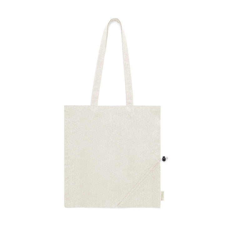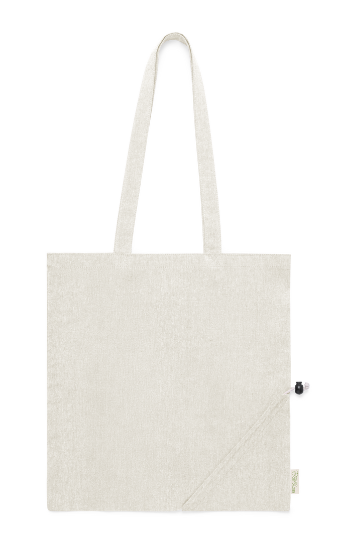 Nature Linie Falttasche aus 120g/m2 recycelter Baumwolle. Genähtes Finish und lange verstärkte Griffe (70 x 2,5cm). Kleines Faltmaß durch Kordelzug mit Verstellzubehör. Erhältlich in einer breiten Farbpalette, mit Etikett aus recycelter Baumwolle auf dem Außenetikett. Widerstandsfähig bis zu einem Gewicht von 6 kg.GRS-Zertifizierung (Global Recycled Standard) verfügbar, die die recycelte Herkunft des für die Herstellung des Produkts verwendeten Materials garantiert.