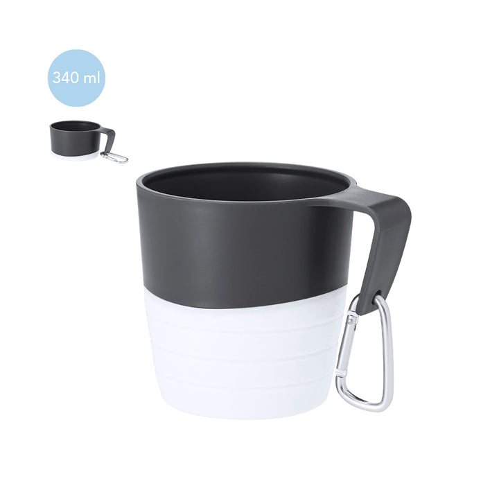 Faltbare Tasse mit 340 ml Kapazität. Hergestellt aus hochwertigem Silikon mit einem harten Rand und Henkel aus strapazierfähigem PP. Mit matter Oberfläche kann diese Tasse für eine einfache und bequeme Lagerung gefaltet werden. Mit einem Metallkarabiner für einen einfachen Transport. BPA-frei.