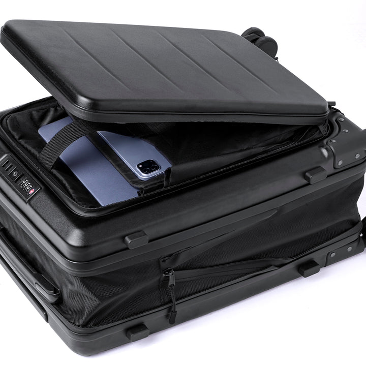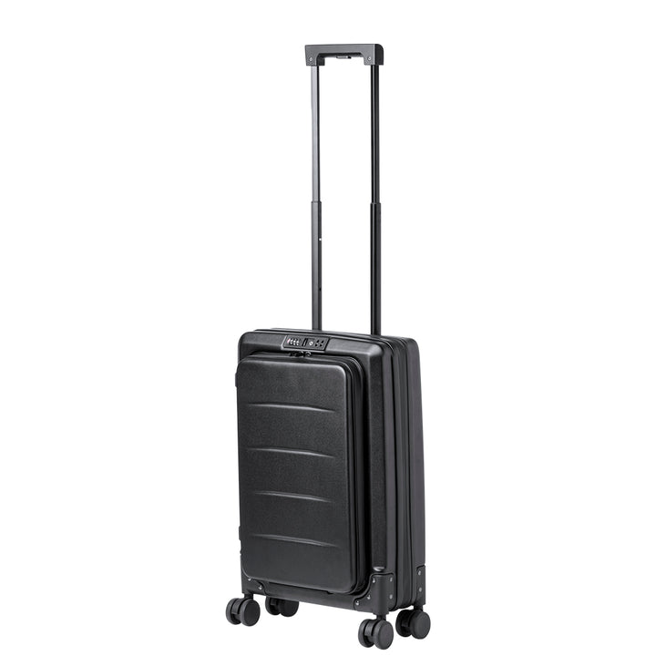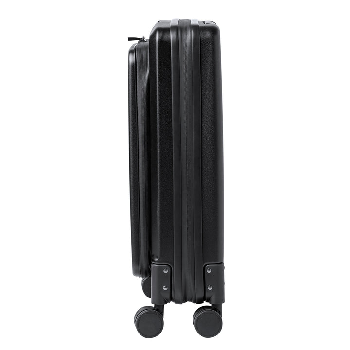 Praktischer Klappwagen mit 4 Lenkrädern aus starrem ABS. Erweiterbarer Mittelteil des Trolleys mit Doppelreißverschluss und Doppelzieher. Ausgestattet mit einer gepolsterten Tasche für einen Laptop bis 15 Zoll und einer Fronttasche für Tablets bis 10 Zoll. TSA-Standardschloss (Transportation Security Administration), das es den Zollbehörden ermöglicht, mithilfe eines speziellen, der Behörde zur Verfügung stehenden Schlüssels den Inhalt des Gepäcks zu überprüfen, ohne das Schloss gewaltsam öffnen oder aufbrechen zu müssen.