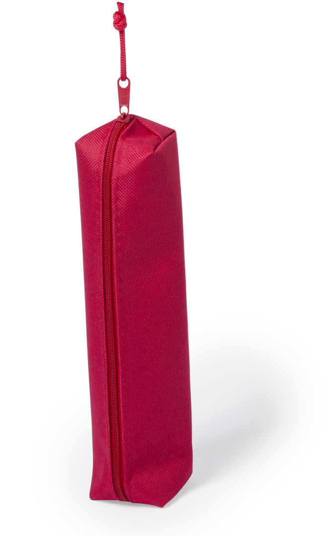 Etui aus resistentem 600D Polyester in verschiedenen lebendigen Farben. Mit Reißverschluss und farblich passendem Zugband für einfaches Öffnen.