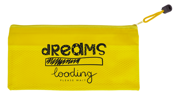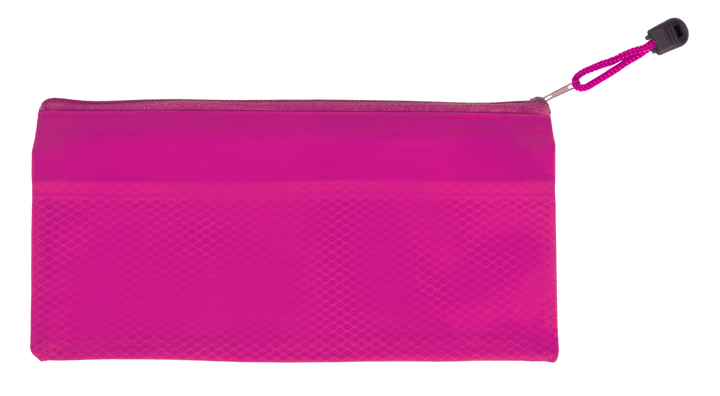 Estuche de cremallera con suave cuerpo acabado en PVC de viva gama de colores. Con cinta a juego en tirador para fácil apertura.