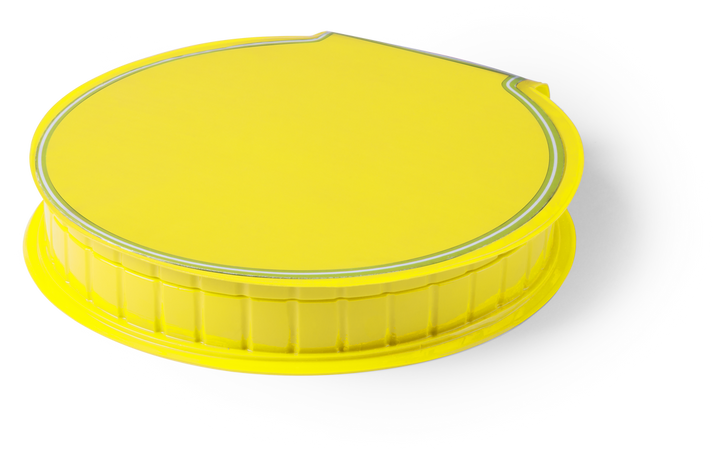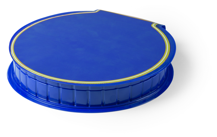 Rundes, widerstandsfähiges Design-Etui in kräftigen Farben mit 14-teiligem Set im Inneren. Enthält Radiergummi, Anspitzer, Wachsmalstifte und zylinderförmige Buntstifte sowie Filzstifte, Aquarellfarben und Pinsel.