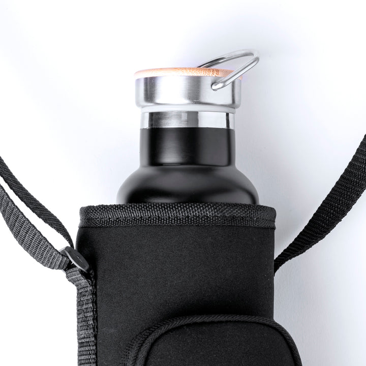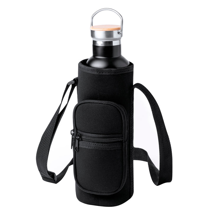 Eine zusätzliche Reißverschlusstasche an der Vorderseite bietet Stauraum für kleine Gegenstände wie Schlüssel, Geld oder ein Handy, was den Flaschenhalter besonders praktisch macht.