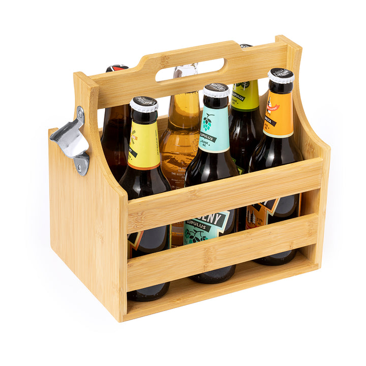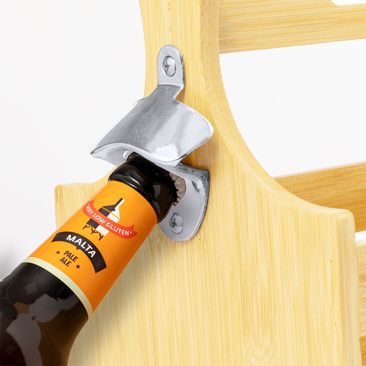 Der Flaschenhalter Voxen überzeugt durch seine praktische Handhabung und ästhetische Form. Ein praktischer Griff an der Oberseite ermöglicht das bequeme Tragen, und der integrierte Flaschenöffner aus Metall sorgt für zusätzliche Funktionalität. Das minimalistische Design und die Verwendung von hochwertigem Bambus verleihen dem Flaschenhalter eine besondere Optik, die in jedem Raum für Aufsehen sorgt.
