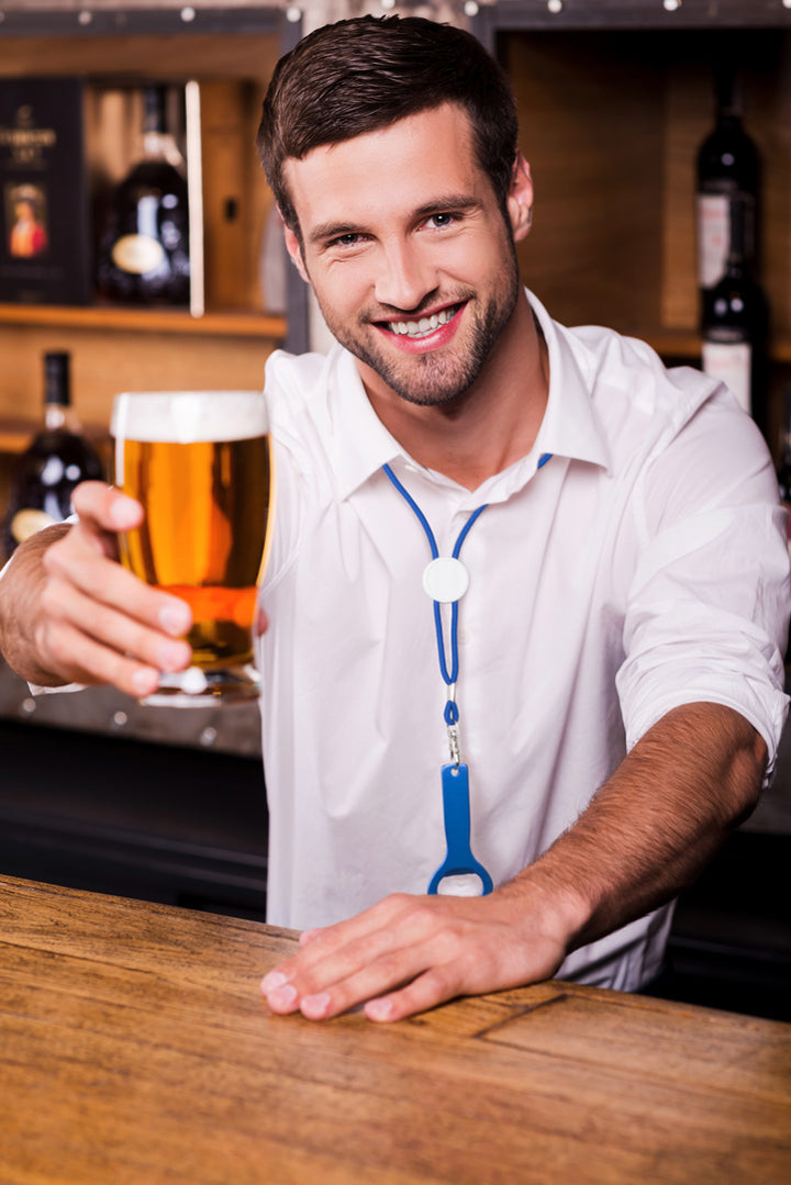 Aluminium-Flaschenöffner in verschiedenen kräftigen Farben. Mit gestanztem Griff für Lanyard (nicht inklusive). Speziell für den Laserdruck entwickelt.