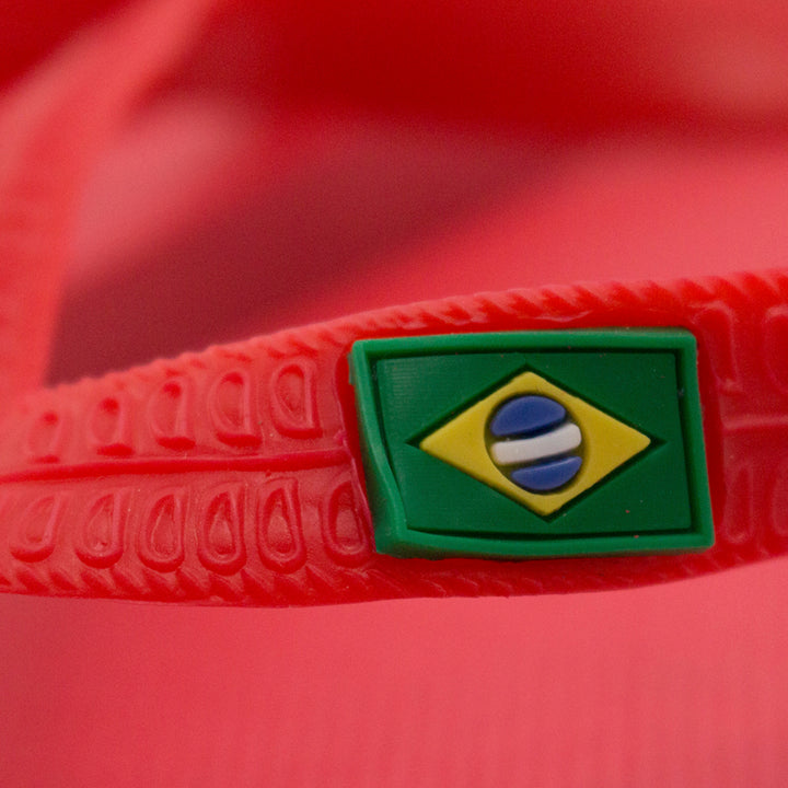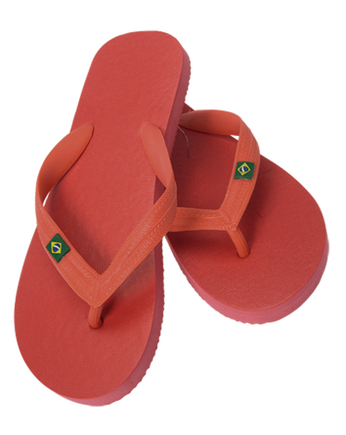 Flip Flops mit robuster EVA-Sohle und PVC-Riemen mit der brasilianischen Flagge. Erhältlich in verschiedenen lebendigen Farben und den Größen 36-38 und 42-44.