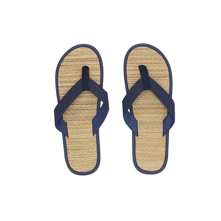 Ein Paar Flip-Flops mit Strohsurface, PU-Riemen und EVA-Sohle.Hergestellt aus pflanzlichen Materialien, um die Nutzung von natürlichen Rohstoffen zu fördern und die Emissionen zu reduzieren.