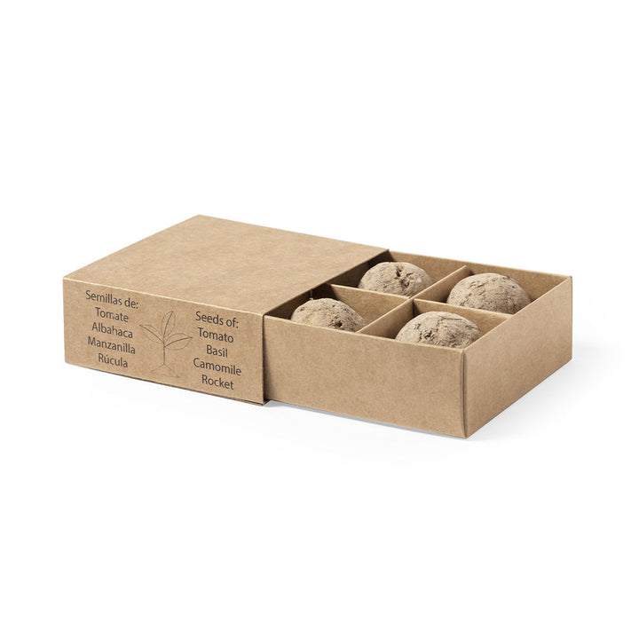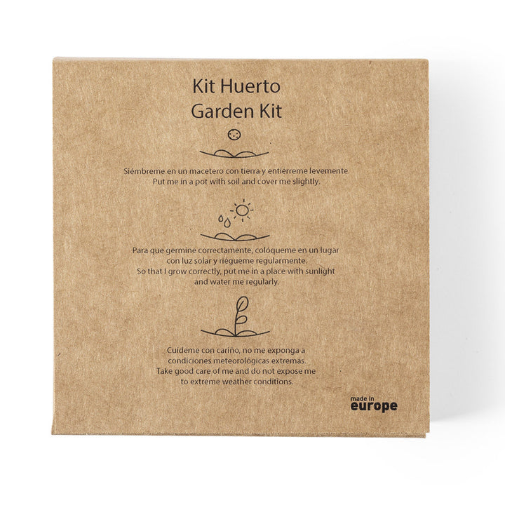 Gemüsegarten-Set mit Samen für Tomaten, Basilikum, Rucola und Kamille. Präsentiert in einer Schachtel aus recyceltem Karton mit Pflanzanleitung, Made in Europe-Emblem und mit 4 unabhängigen Fächern.