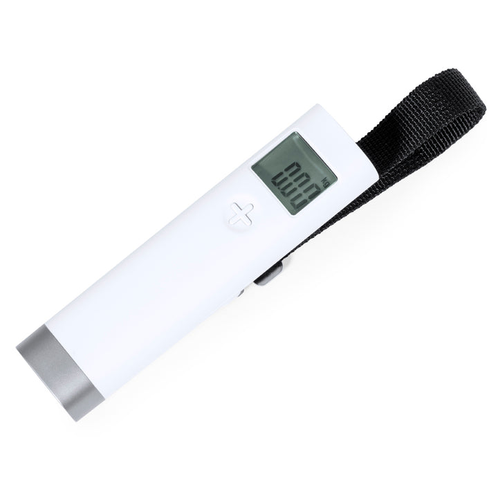 Leichte und praktische Gepäckwaage. Mit digitaler Anzeige und Wiegekapazität bis 50 kg. Leicht zu tragen und mit dem praktischen Haken an Koffern, Rucksäcken oder Taschen zu befestigen. Bedienungsanleitung in Englisch und Spanisch verfügbar. Batteriebetrieben (1 Knopfzelle im Lieferumfang enthalten).