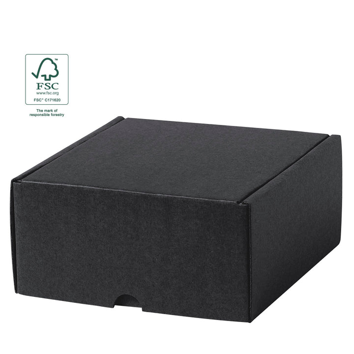 Präsentationsbox Größe S, aus schwarzem Wellpappe. Im Einklang mit dem Marktentwicklungsziel der ganzheitlichen Nachhaltigkeit von Geschenken, die Lösungen bietet, um zur Verbesserung und Erhaltung unseres Planeten beizutragen.