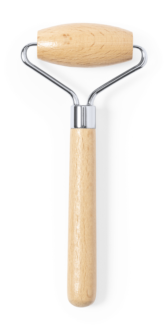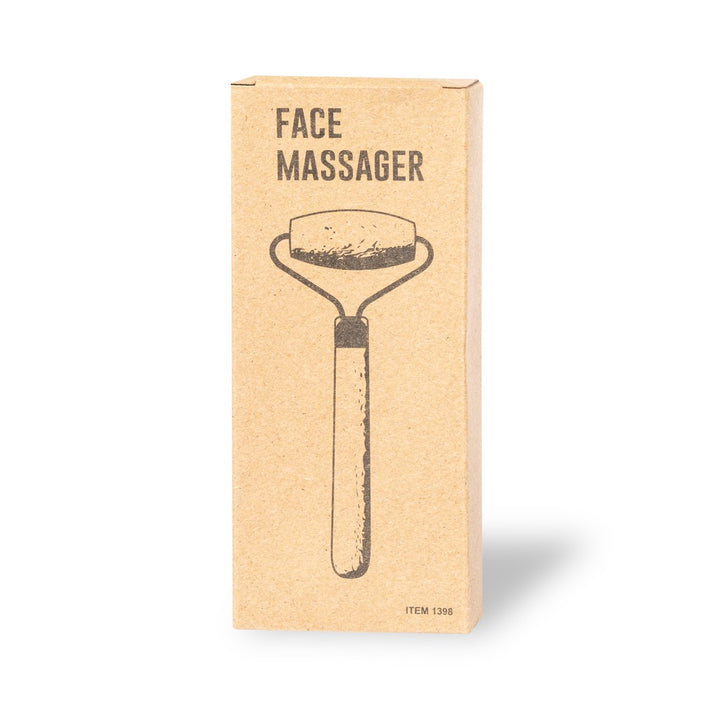 Gesichtsmassage-Massageroller aus Naturholz, der die Gesichtspflege fördert und entspannend wirkt. Präsentiert in einer individuellen Ökodesign-Box aus Kraftkarton.