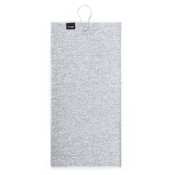 Golfhandtuch aus RPET, saugfähig und weich mit den Maßen 40x60 cm. In der Mitte befinden sich ein verstärkter Ring und ein Karabinerhaken, beide aus rostfreiem Stahl. Mit dem RPET-Logo auf dem Etikett.Das RPET-Material wird aus recyceltem Kunststoff hergestellt, um die Wiederverwendung von Kunststoffabfällen zu fördern und einen Beitrag zur Nachhaltigkeit unseres Planeten zu leisten.