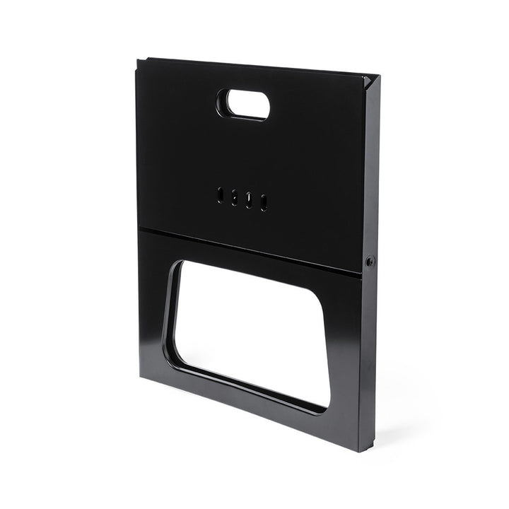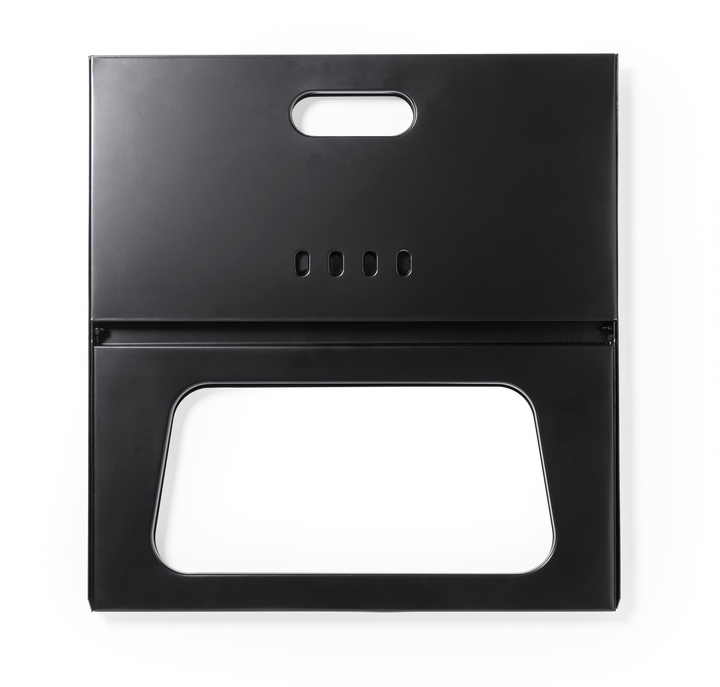 Faltbarer Grill aus widerstandsfähigem Metall mit schwarzer Oberfläche. Mit bequemen Griffen und Grillrost, leicht zusammenklappbar und kompakt in der Größe. Präsentiert in einer attraktiven, individuellen Designbox.