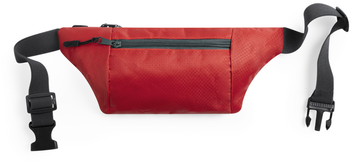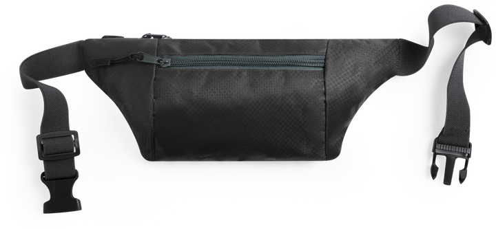 Gürteltasche aus widerstandsfähigem Ripstop-Material in Wabenform. Zwei Reißverschlusstaschen mit Stoffzug für eine bequeme Öffnung. Einen aus Nylon verstellbaren Gurt mit Schnallenverschluss. Entwickelt für Sport- und Freizeitaktivitäten.