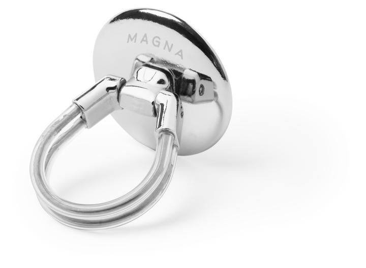 Soporte selfie en metal cromado para smartphone. De elegante diseño y con adhesivo 3M, de fijación extra fuerte y libre de residuos al despegarlo del dispositivo. Con doble anilla soporte posterior, para dedo y rejilla del salpicadero del vehículo. Presentado bolsita de diseño individual.