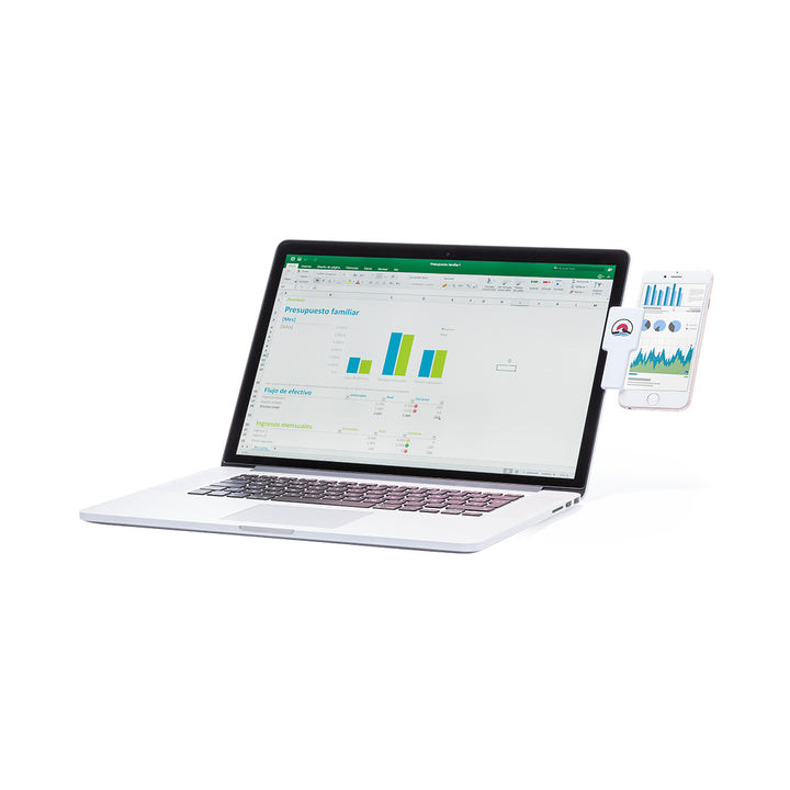 Smartphone-Halterung mit extra fester Klemme zur Befestigung am Computer- oder Tablet-Display. Mit großer Druckfläche.