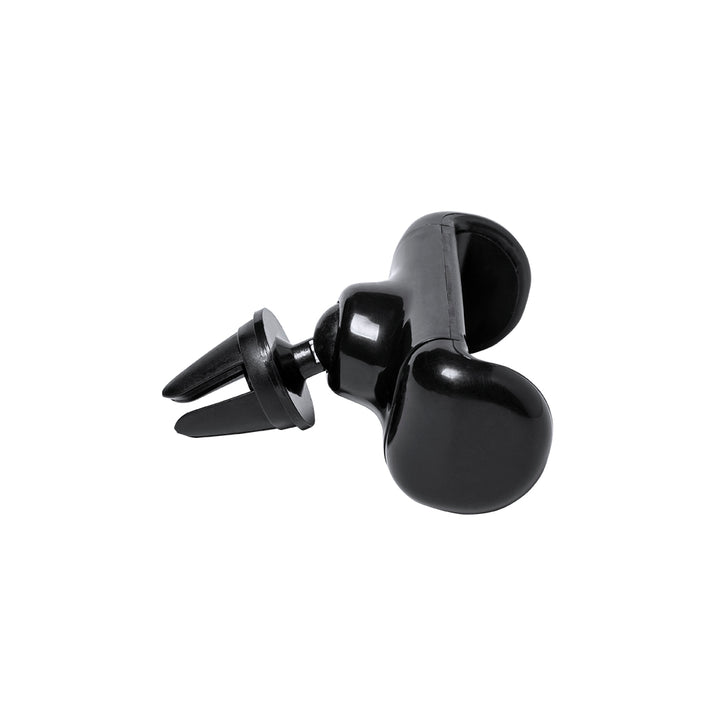 Verstellbarer Smartphone-Halter mit minimalistischem Design, 360º drehbarem Fuß und eleganter schwarzer Oberfläche. Mit Befestigungssystem für Autolüftungsgitter und großer Beschriftungsfläche, speziell für den Tampondruck konzipiert.