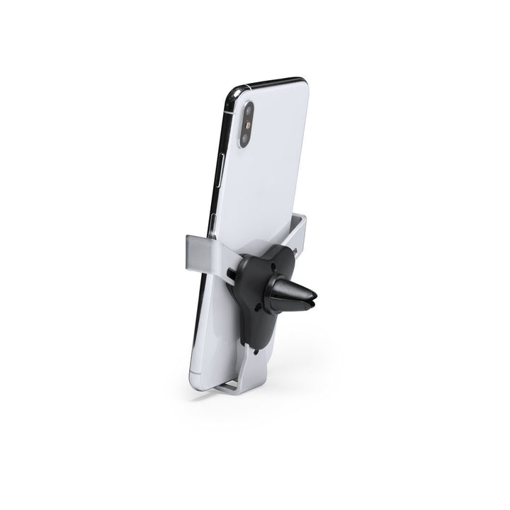 Smartphone-Halterung mit minimalistischem Design und speziell für Smartphones im XXL-Format entworfen. Mit universellem Befestigungssystem, das durch das Gewicht des Telefons selbst aktiviert wird und die seitlichen Griffe verstellt, sobald das Gerät in die Halterung eingesetzt wird. Für Autolüftungsgitter und mit einer speziell für den Tampondruck entwickelten Vorderseite.