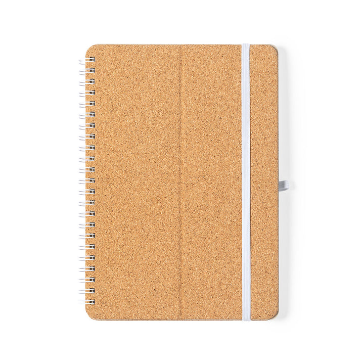 Ringnotizbuch der Linie Natur. Starre Einbände aus Naturkork, mit originellem Weizenstrohhalter für Smartphone und Tablet. Mit elastischem Verschluss und Stifthalter in weißer Farbe. 70 Innenseiten mit einstreifigem Layout. Präsentiert in einer individuellen Designtasche.