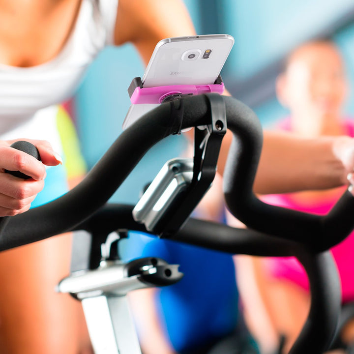 360º drehbare Lenkerhalterung für Smartphones mit coolem, zweifarbigem Design in einer Vielzahl von Farben. Mit resistentem Befestigungsgummi und Polstern in der Halterung für optimalen Halt und Schutz des Smartphones.