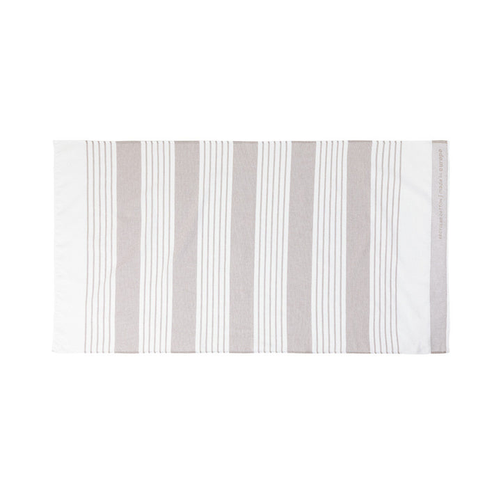 Linie "Natur" Handtuch in Brauntönen. Hergestellt in Europa, mit einer Kombination aus recycelter Baumwolle und Polyester von 330g/m2. Mit GRS-Zertifizierung (Global Recycled Standard), die die recycelte Herkunft des bei der Herstellung des Produkts verwendeten Materials bestätigt. Größe 150 x 80 cm.