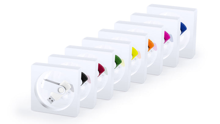 USB-Stick-Case mit transparentem Fenster und auffälligem Design in elegantem Weiß.