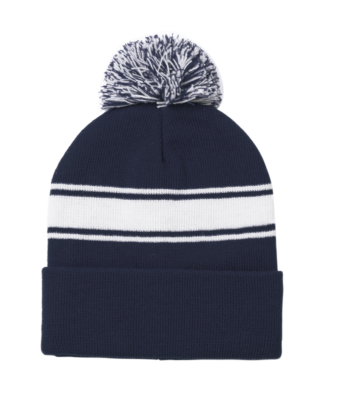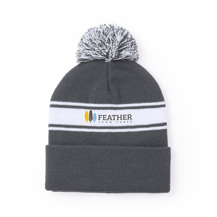 Weiche und warme Mütze aus Acryl in einer Vielzahl von Farben. Mit originellem Design, weißem Streifen und farblich passendem, zweifarbigem Bommel.