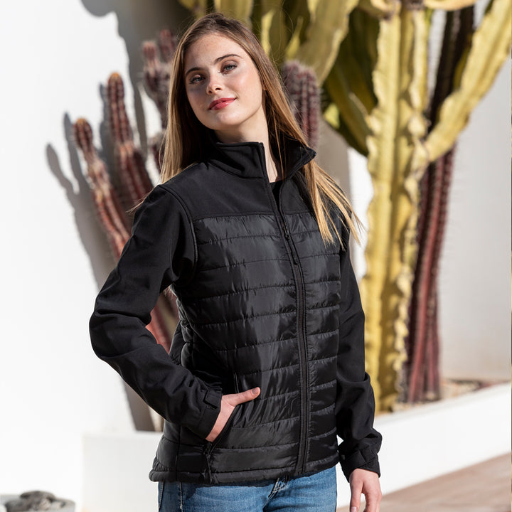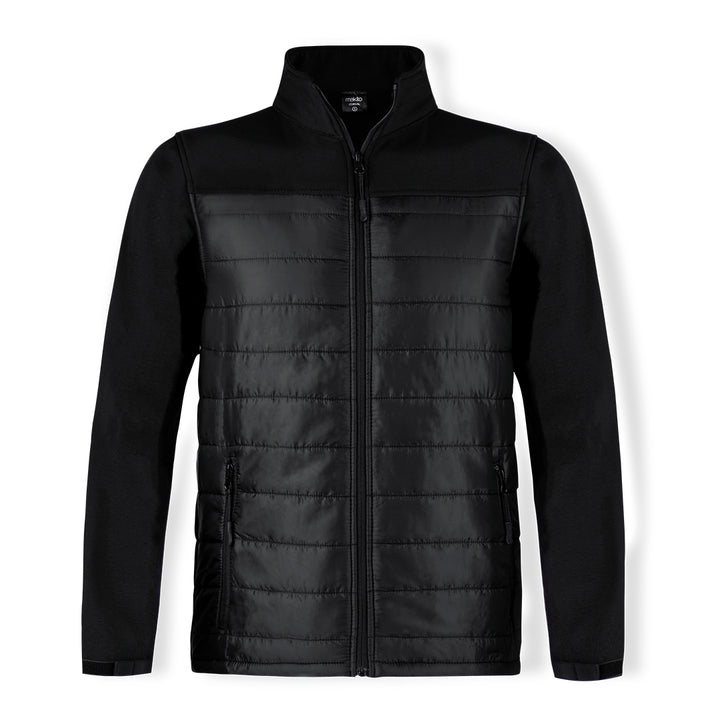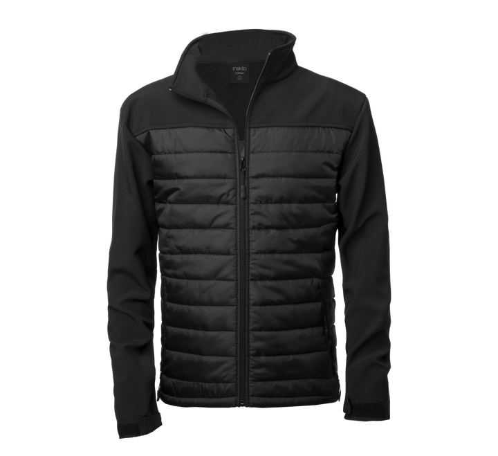 Wasserdichte und atmungsaktive Jacke in Kombination aus Softshell- und Polyestermaterialien. In eleganter schwarzer Farbkonstruktion, mit Reißverschluss und seitlichen Reißverschlusstaschen, mit Pullern zum einfachen Öffnen. Die Ärmelbündchen sind verstellbar und in den Größen S, M, L, XL, XXL erhältlich.