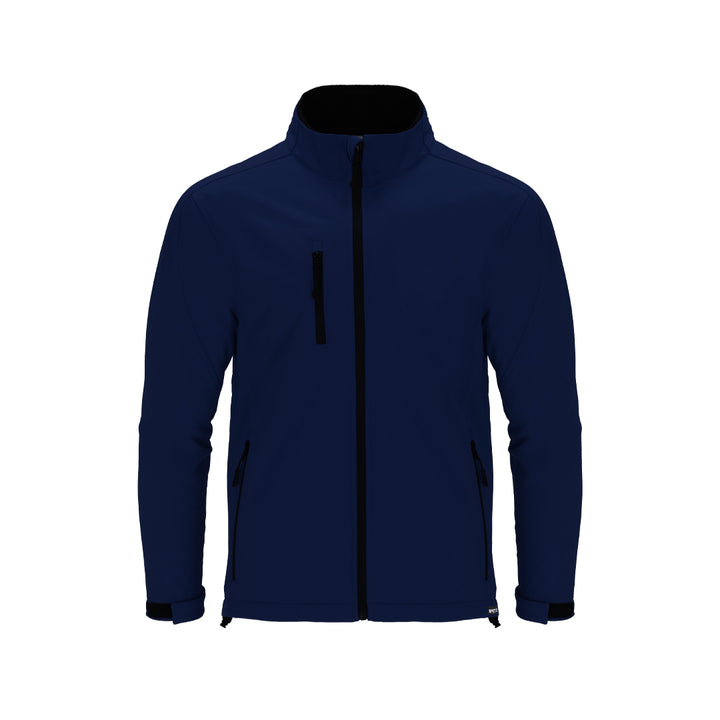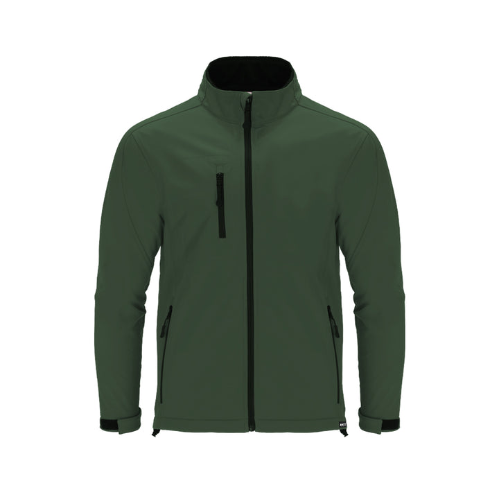 RPET Softshell-Jacke aus 3 Schichten, 340 g/m². Mit 8000mm Membran, wasserdicht und atmungsaktiv. Außen Softshell und innen Mikrofleece in Schwarz. Mit Außentasche auf der rechten Brust und zwei seitlichen Reißverschlusstaschen. Mit Zentralreißverschluss und umgekehrten Reißverschlüssen an den Taschen, einschließlich schwarzer Zugbänder. Raglanärmel mit Klettverschlusssystem an den Manschetten in Schwarz. Passender Kinnschutz und verstellbarer Bund mit elastischem Band und Stopper. RPET-Etikett am Saum des Kleidungsstücks.