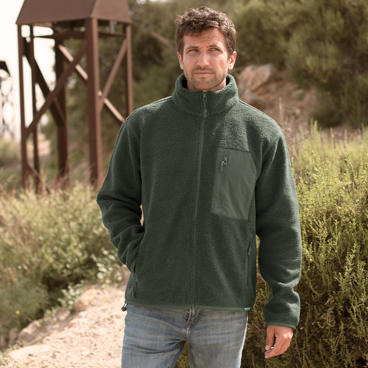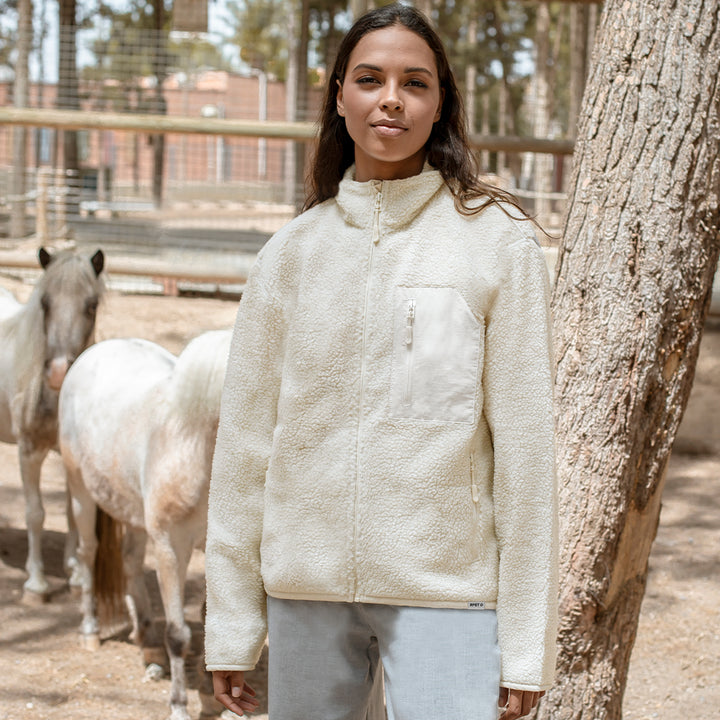 Jacke aus warmem 450g/m2 RPET-Sherpa-Material, mit farblich passendem Fleece-Futter.Weicher Griff und Fleecestil. Brusttasche aus RPET-Polyester mit Reißverschluss und passendem Reißverschluss-Zipper. Mittlere Reißverschlusstasche aus Nylon auf der Rückseite und Seitentaschen mit farblich passenden Zippern für einen einzigartigen Stil. Inklusive Öko-Label am unteren Saum des Kleidungsstücks.Erhältlich in verschiedenen Farben und in den Größen XS, S, M, L, XL, XXL.