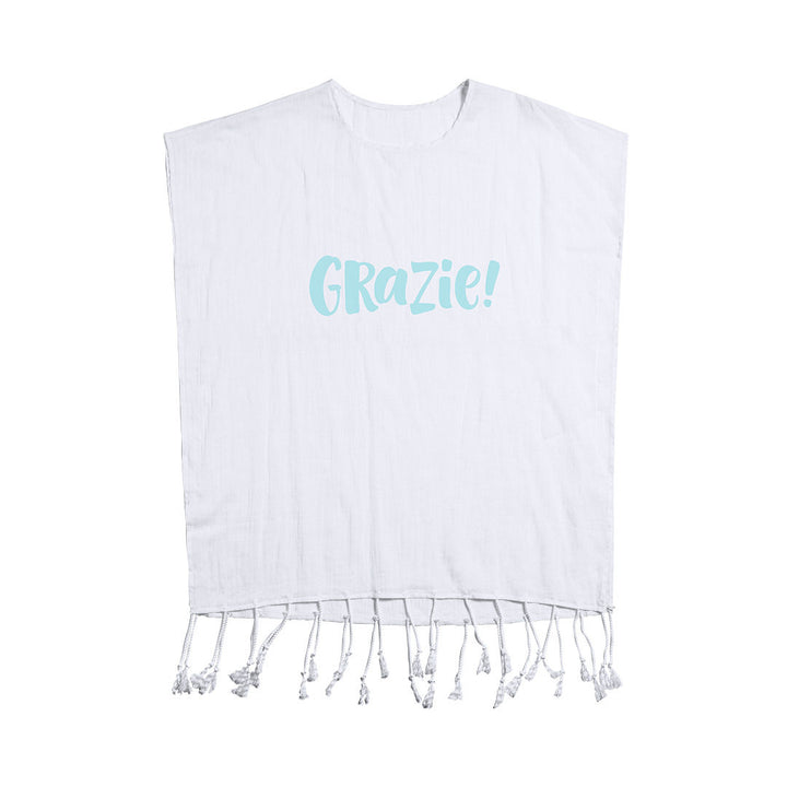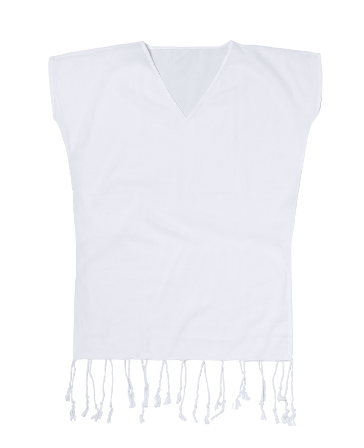 Kaftan aus weichem Stoff und mit Fransenabschluss. Einheitsgröße für Erwachsene und aus 100% Baumwolle gefertigt.