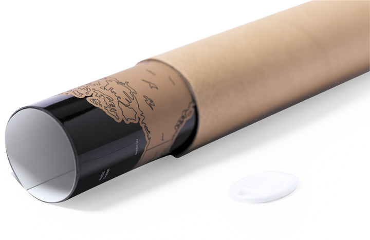 Weltkarte aus der Naturlinie für Reiseliebhaber, aus laminiertem Papier. Man braucht nur die Oberfläche des gewählten Landes anzukratzen, und sie wird markiert. Wird inklusive Kratzwerkzeug in einem attraktiven Kartonetui mit Öko-Design geliefert.