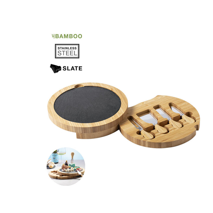 Das Käse-Set wird in einer individuell gestalteten Bambusbox geliefert und zusätzlich in einer ökologischen Verpackung präsentiert. Diese durchdachte Aufmachung macht es zu einem vielseitigen Accessoire, das sowohl in der Küche als auch bei besonderen Anlässen Verwendung findet.