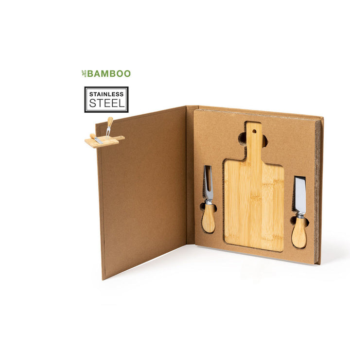 - Set-Inhalt: Schneide- und Servierbrett mit Griff und Aufhängeloch, Gabel und Messer
