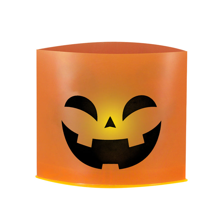 Dekorative Halloween-Kerze mit verschiedenen Designs auf jeder Seite. Mit batteriebetriebenem LED-Licht (inbegriffen) und praktischem Ein/Aus-Schalter.