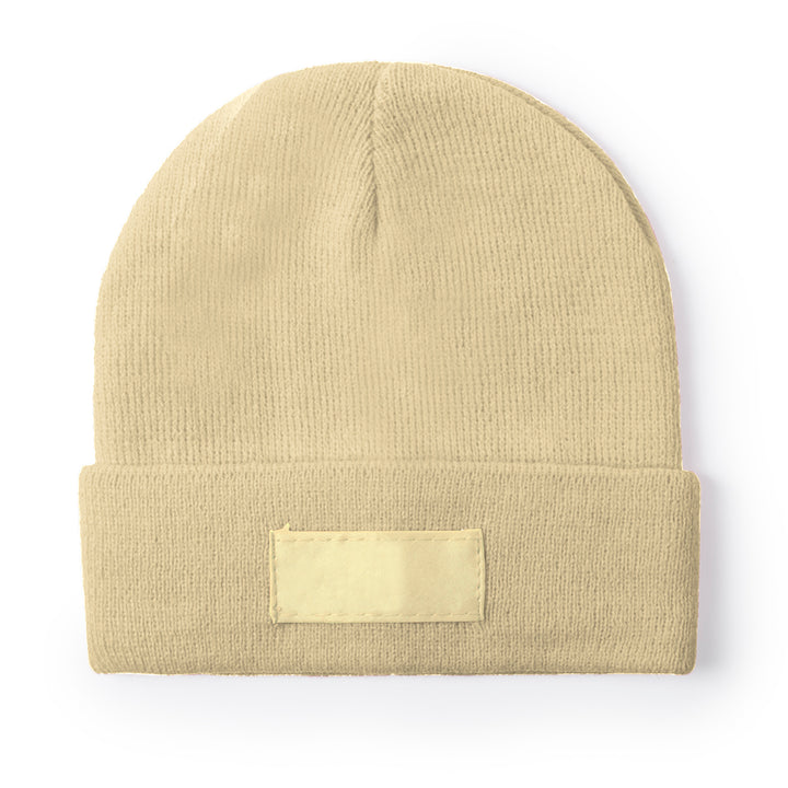 Weiche und warme Kinderhut aus Acrylmaterial. Elastisch und leicht anzupassen, mit passendem Saum und vorderem Etikett für Branding.