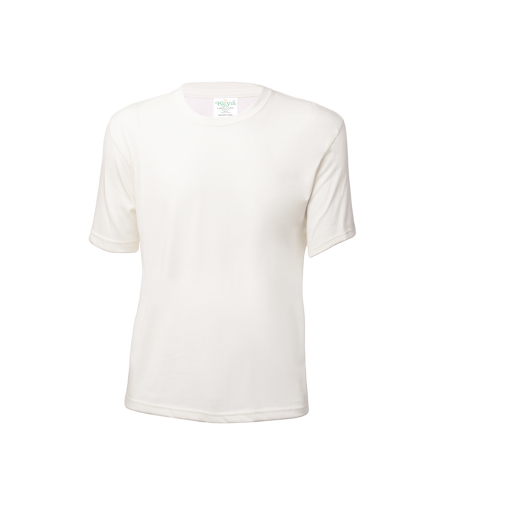 Kinder-T-Shirt Keya Organic Natural. Aus 100% Bio-Baumwolle, Single-Jersey-Material 150g/m2, mit natürlichem Finish. Bio-Emblem auf dem Etikett. Erhältlich in den Größen XS (5-6), S (7-8), M (10-11), L (12-13) und XL (14-15).