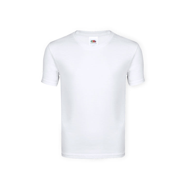 Weißes Iconic T-Shirt für Jungen von Fruit Of The Loom. Hergestellt aus 100% gebürsteter Ringspinn-Baumwolle 140g/m2. Weiches Material und klassische Passform, mit schmalem 1x1 geripptem Rundhalsausschnitt und passender Knopfleiste. Leicht abnehmbares Etikett und erhältlich in den Größen 3-4, 5-6, 7-8, 9-11, 12-13, 14-15.
