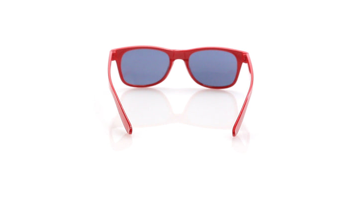 Sonnenbrille für Kinder mit UV-400-Schutz und klassischem Design. Mit Rahmen in lebhaften Farben und schwarzen Gläsern.