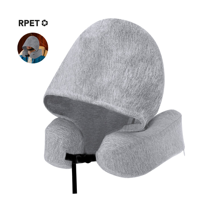 Kissen aus weichem RPET-Gewebe, mit anpassbarem, weichem Füllmaterial. Mit Kapuze für mehr Wärme und ausgestattet mit einem individuell einstellbaren Zubehör, einem Tragegriff und einer Aufbewahrungshülle. Enthält das RPET-Label auf dem Etikett.Das RPET-Material wird aus recyceltem Kunststoff hergestellt, um die Wiederverwendung von Kunststoffabfällen zu fördern und zur Nachhaltigkeit des Planeten beizutragen.